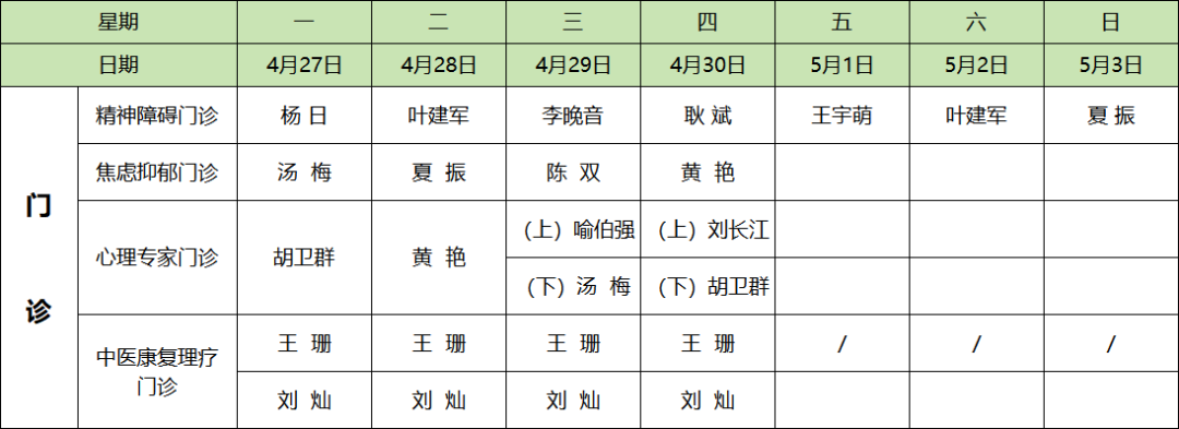 全院门诊医师排班表